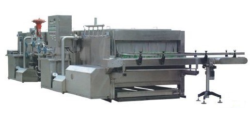 本机是在消化吸收国外机样的基础上全新设计而成。采用循环热水杀菌循环温水预冷,再用冷却水喷淋冷却三段处理而成,具有杀菌湿度自控,杀菌时间无级可调等特点,广泛应用于各种瓶装,罐装酸性饮料,电解质饮料,酒类调味品等产品的杀菌冷却。