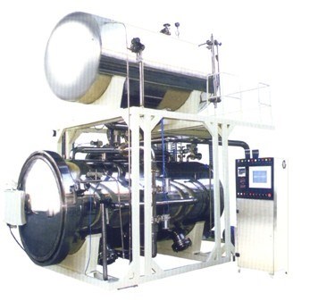 热水回转式杀菌釜是适用于对瓶装、罐装食品的二次灭菌设备,由工艺罐、热水罐、泵及连接管道、PLC和触摸屏组成的自动控制系统组成。采用高温高压的热水作多种食品的高温快速杀菌处理,食品在装置内连续缓慢回转,使其热传递更迅速均匀,大大缩短整个杀菌过程的时间,从而达到高温短时杀菌处理。同时,可避免食品周围产生过热现象。温度控制系统可灵活地根据不同包装物的特点进行自动控制,压力控制系统配合标准模式自动调整压力,根据不同情况,进行反压较正,这对防止容器的变形和破损,提高成品率十分有利。同时,通过对T-t,P-t记录曲线的分析和检查,可以有效地进行生产和品质管理。适用范围:乳品类、饮料类、罐头类、肉食类等。